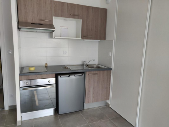 Un appartement de type 2 de 38m² situé au 2ème étage comprenant : une cuisine équipée et aménagée : meubles hauts, meubles bas, hotte aspirante, plaque vitrocéramique deux feux, frigo top, four encastré, un séjour ouvrant sur un balcon, une chambre avec placards équipés, une salle de bains avec paroi de baignoire.