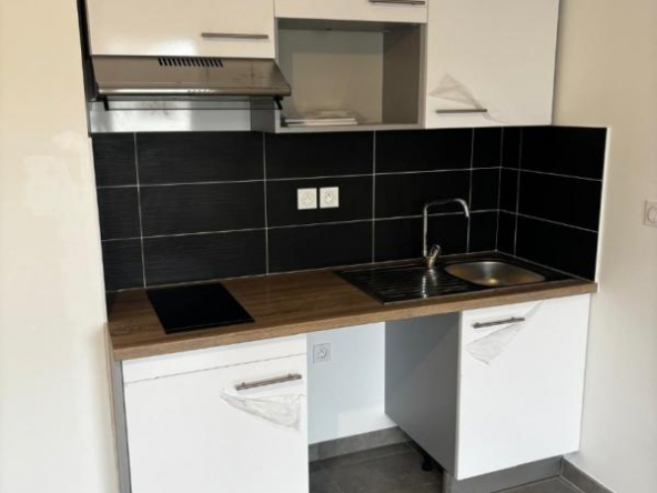 L’appartement se compose d’une entrée avec placard, d’une salle de bains équipée (baignoire, meuble vasque et WC), d’une chambre avec rangements, ainsi que d’une cuisine équipée et aménagée (plaque de cuisson, hotte aspirante) ouverte sur un séjour lumineux.