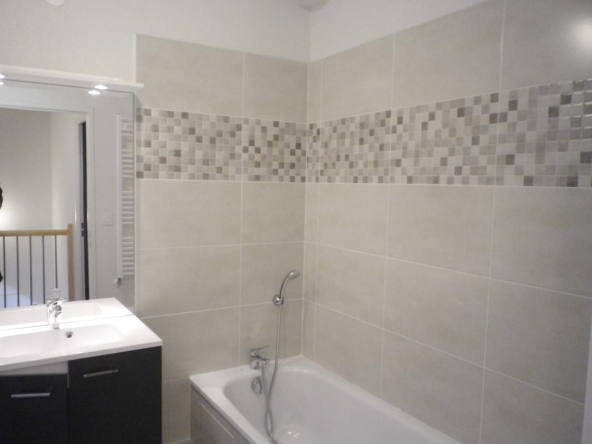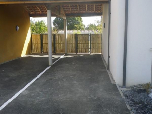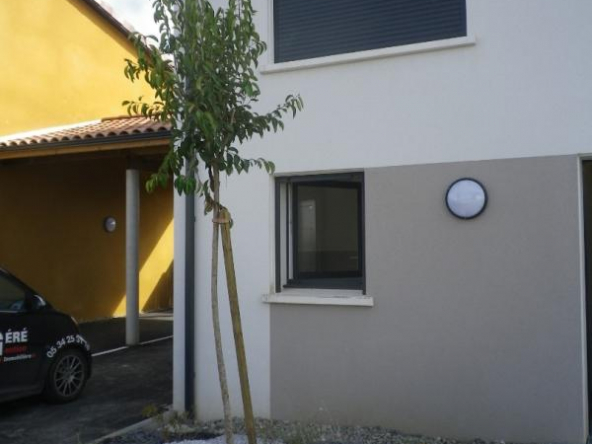 RESIDENCE LES JARDINS D’ATRIA A SEYSSES, 1055 chemin de Couloume, une maison de type 3 mitoyenne en duplex comprenant une entrée avec placard, un séjour avec coin cuisine, un wc, à l’étage : un dégagement, deux chambres avec placard, une salle de bains, un jardin, un abri voiture attenant et un stationnement aérien.