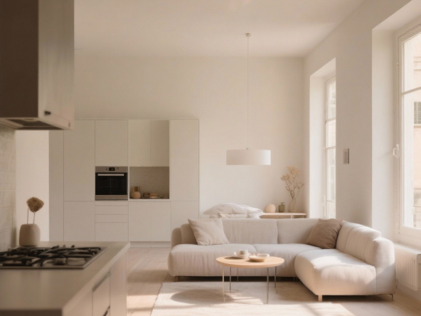 Elle se compose d’un spacieux séjour baigné de lumière, d’une cuisine moderne et fonctionnelle, de deux grandes chambres, ainsi que d’une salle de bains élégante.