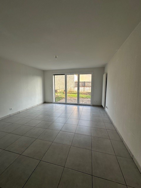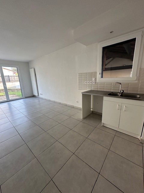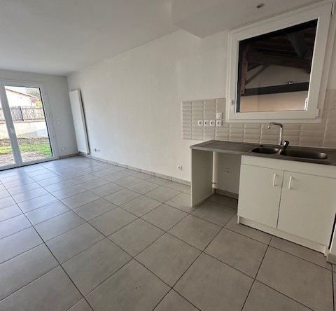 Une villa T3 duplex comprenant au rez-de-chaussée : une entrée, un séjour avec une une cuisine ouverte ouvrant sur un jardin privatif et un rangement extérieur.