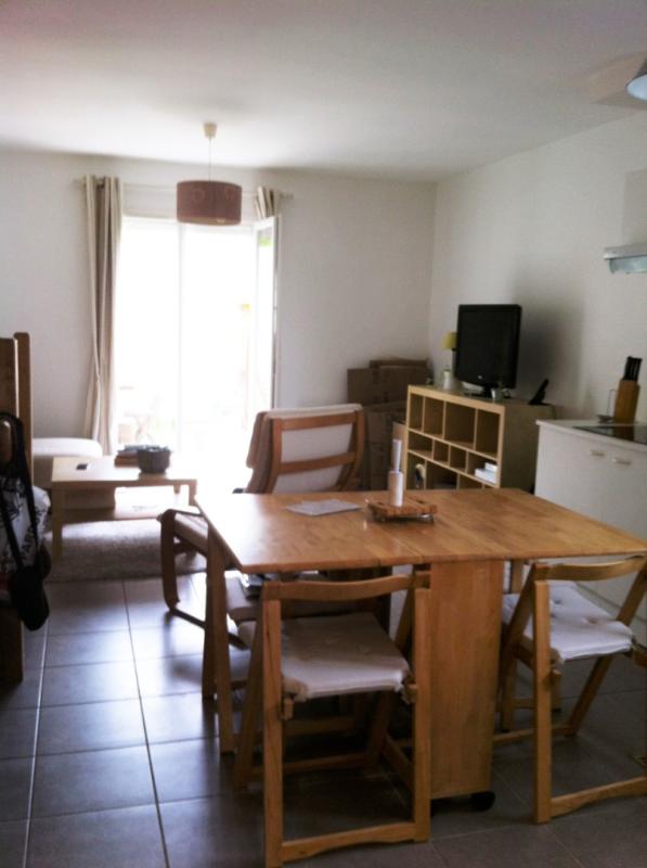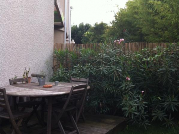 Dans une résidence agréable, une villa T3 duplex comprenant au RDC : une entrée avec placards, un WC, une cuisine équipée (plaque vitrocéramique 4 feux et hotte aspirante) ouverte sur le séjour, donnant sur une terrasse et un jardin clos.